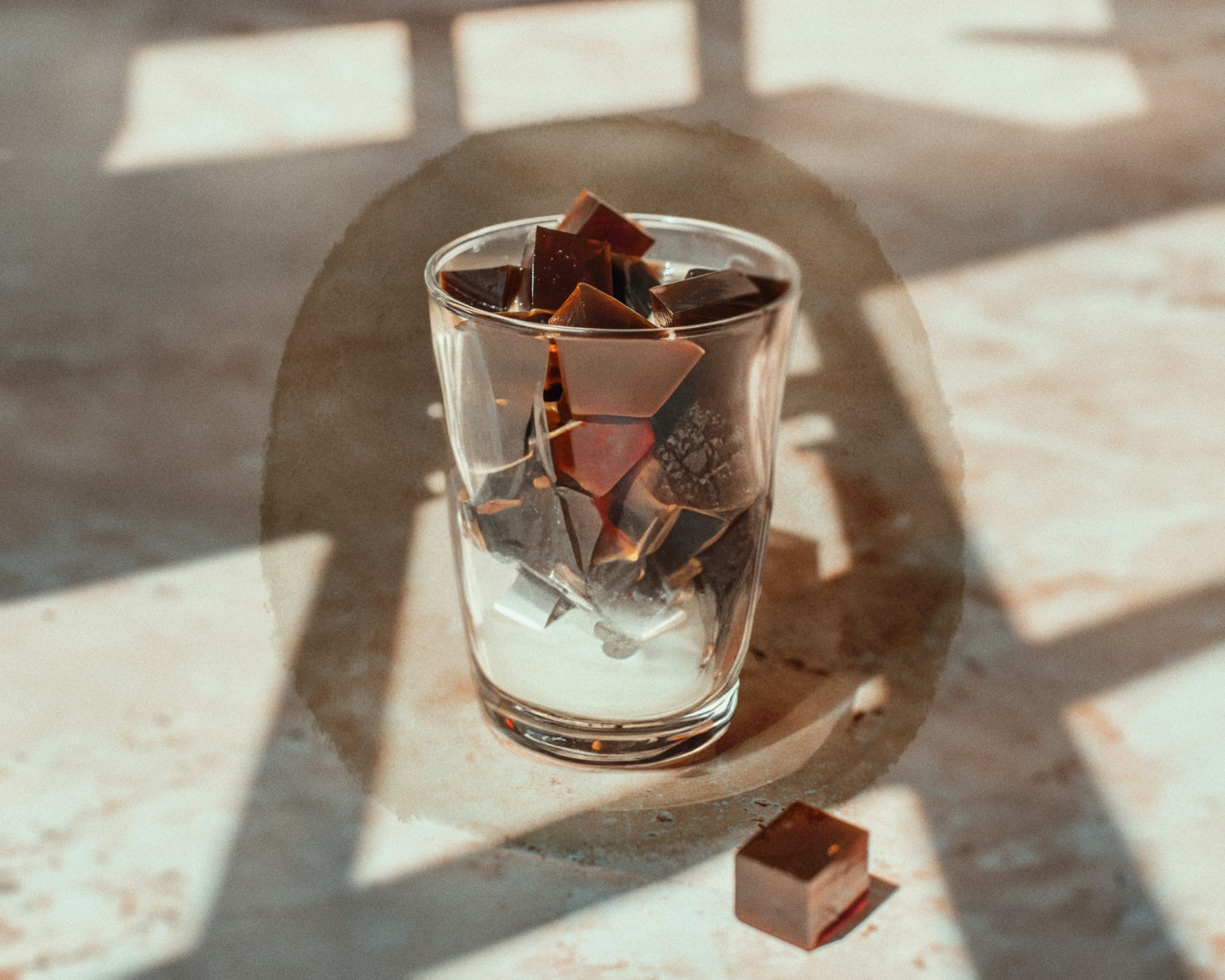 Con un eslogan que rezaba «El café que puedes comer», la gelatina de café fue un éxito en la década de los sesenta en Japón, aunque ya existía en Reino Unido y Estados Unidos desde el siglo xix. La gracia es que puedes disfrutar del sabor amargo del café combinado con la deliciosa textura de la gelatina y una cremosa nata. Hay dos formas de hacer gelatina de café: puedes dejar que solidifique directamente en copas de postre o prepararla en un molde más grande y cortarla o sacar bolas con una cuchara y servirla en las copas.