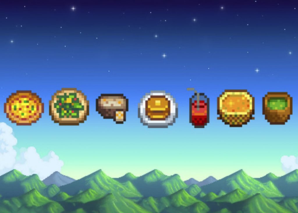 En Stardew Valley, la comida no es un chiste ni un “power-up” loco: es parte del día a día del juego. Recetas, ingredientes, platos que mejoran energía y te ayudan a seguir con la partida.